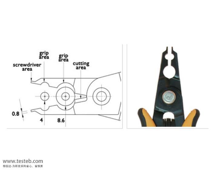 鉗頭尖部可以用作螺絲起子,以松開烙鐵中的螺釘,尖部刀頭厚度1.6mm =(0.8 + 0.8)