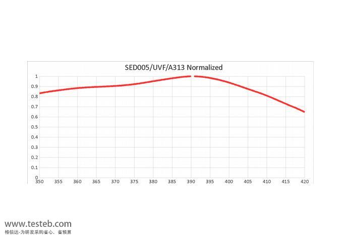 大多數(shù)UV紫外線探頭過濾器具有鐘形光譜曲線,峰值相當(dāng)窄。為了提高UV LED測量系統(tǒng)的精確度,美國ILT公司將高度穩(wěn)定的InGaAsp傳感器與平坦的玻璃濾光片和石英漫射片相結(jié)合,在用于UV固化的關(guān)鍵區(qū)域提供更均勻的響應(yīng)。ILT2400輻照計+SED005/UVF/A313探頭組成的測量系統(tǒng)旨在簡化對UV LED曝光機固化的校準測量,專有的傳感器/濾波器/光學(xué)組件由美國ILT的工程團隊設(shè)計,可提供350-400 nm波段近乎平坦的響應(yīng)。這種平坦的一致的響應(yīng)允許測量和比較各種紫外LED波長,而不需要修改讀數(shù)以適應(yīng)傳感器靈敏度的變化。這個系統(tǒng)也可以用來測量傳統(tǒng)的紫外線源。