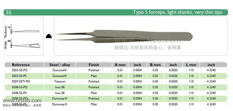 杜蒙鑷子規(guī)格文檔http://www.testeb.com/download/202002/DUMONT_Medical_Biology_5_5A_7.pdf