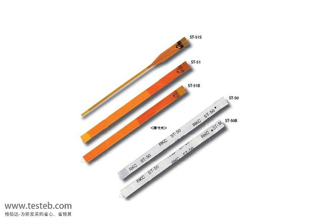 日本理化RKC ST-50/51粘貼型熱電偶/前端剝離型測量表面溫度傳感器由于本身的熱容量非常小,因此可瞬間測量溫度,也最適合于溫度曲線數(shù)據(jù)的収集。ST50熱電偶貼片最高使用溫度和測量高達(dá)300℃高溫,也可準(zhǔn)確測量溫度頻繁変化的微小表面的溫度。