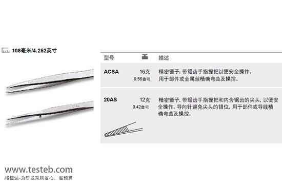 ACSA精密鑷子:帶鋸齒手柄安全操作,用于部件或金屬絲精確彎曲及操控,長108mm,ACSASL為經(jīng)濟型
