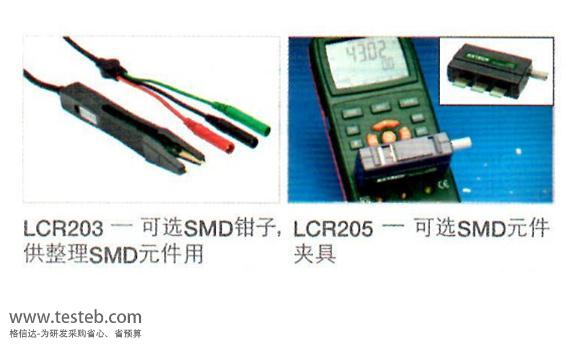 | 夾具選件 | LCR203 SMD鉗子、LCR205 SMD元件夾具 | |