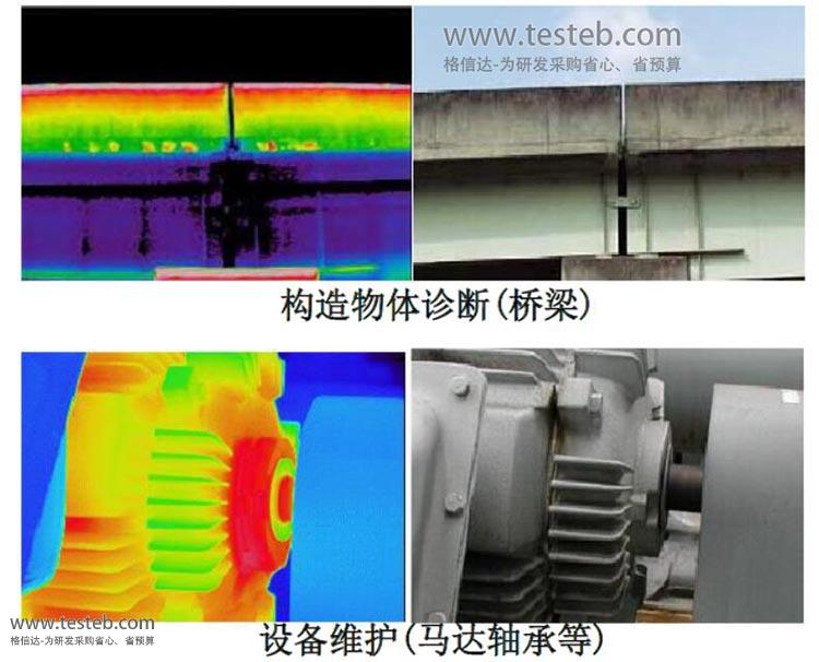 典型應(yīng)用領(lǐng)域:橋梁結(jié)構(gòu)診斷、電子軸承等設(shè)備狀態(tài)監(jiān)測(cè)、建筑物診斷、設(shè)備蓄熱及散熱功能觀察、設(shè)備熱試驗(yàn)