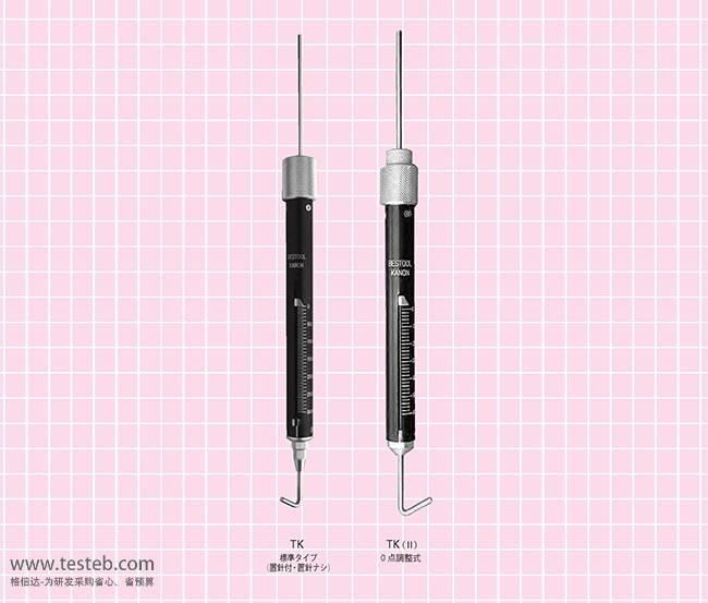 日本bestool-kanon中村制作所TK系列棒形拉力計彈簧秤適用于電子電器、輕工紡織、建筑五金、打火機(jī)及點(diǎn)火裝置、動力機(jī)械、科研機(jī)構(gòu)等行業(yè)的推拉負(fù)荷測試。如在包裝行業(yè)用于測量膠帶、薄膜等包裝材料的拉伸強(qiáng)度。中村kanon TK-3000CN拉力棒特有刻度技術(shù),精度保證在±1%+1digit以內(nèi),即使在水平狀態(tài),也能發(fā)揮測量的威力。中村TK拉力計提供標(biāo)準(zhǔn)單針型和峰值記錄置位針的雙針型。